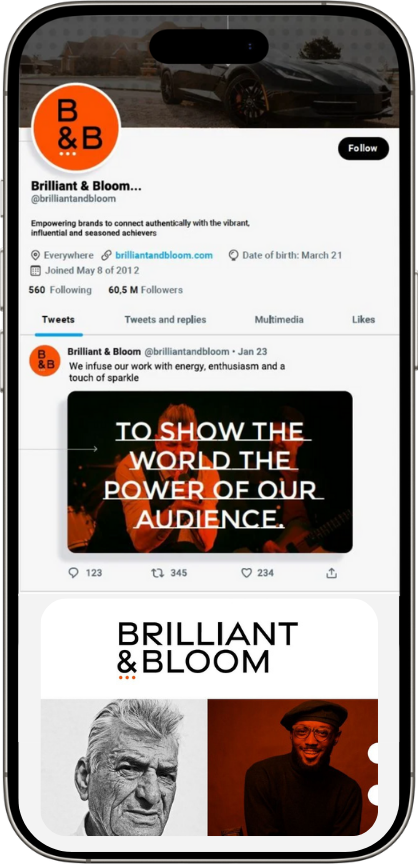 Brilliant & Bloom is a consultancy built to serve a wealthy, overlooked audience—people 50+ who are accomplished, affluent, and still blooming.